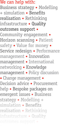 Our work tackles the key challenges that face today's health and care systems. In particular, it helps them to meet expanding demand while also controlling costs, improving quality and raising productivity.